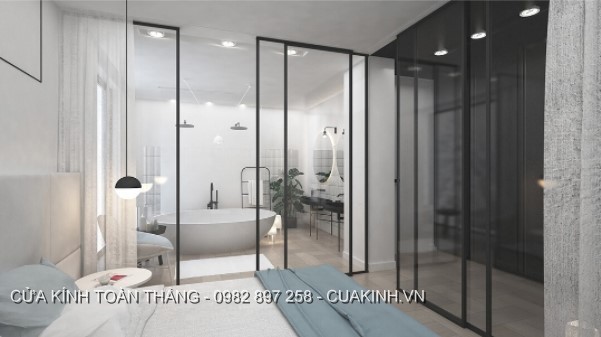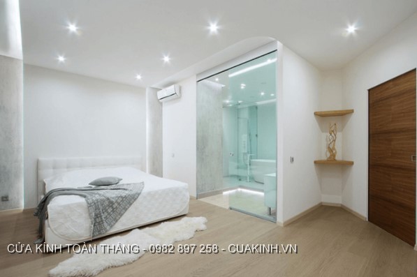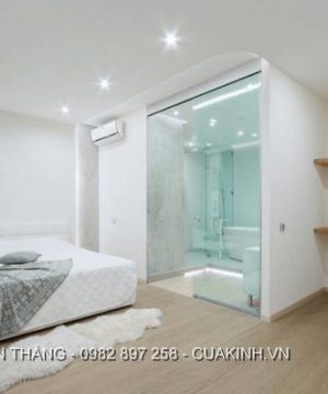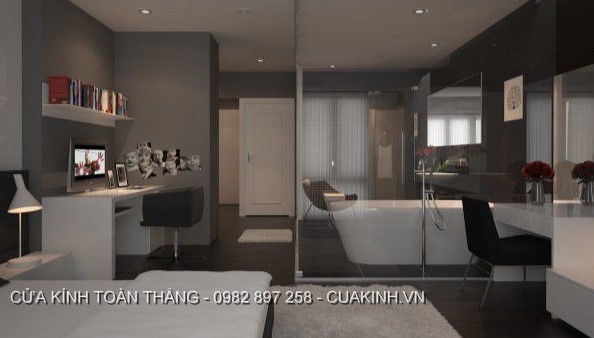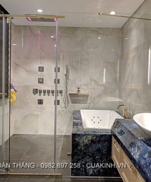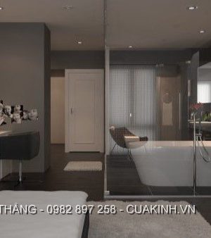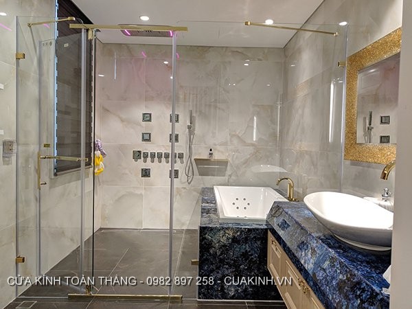 + Vách ngăn kính cường lực có độ dày 10mm hoặc 12mm trong suốt hoạc có màu.